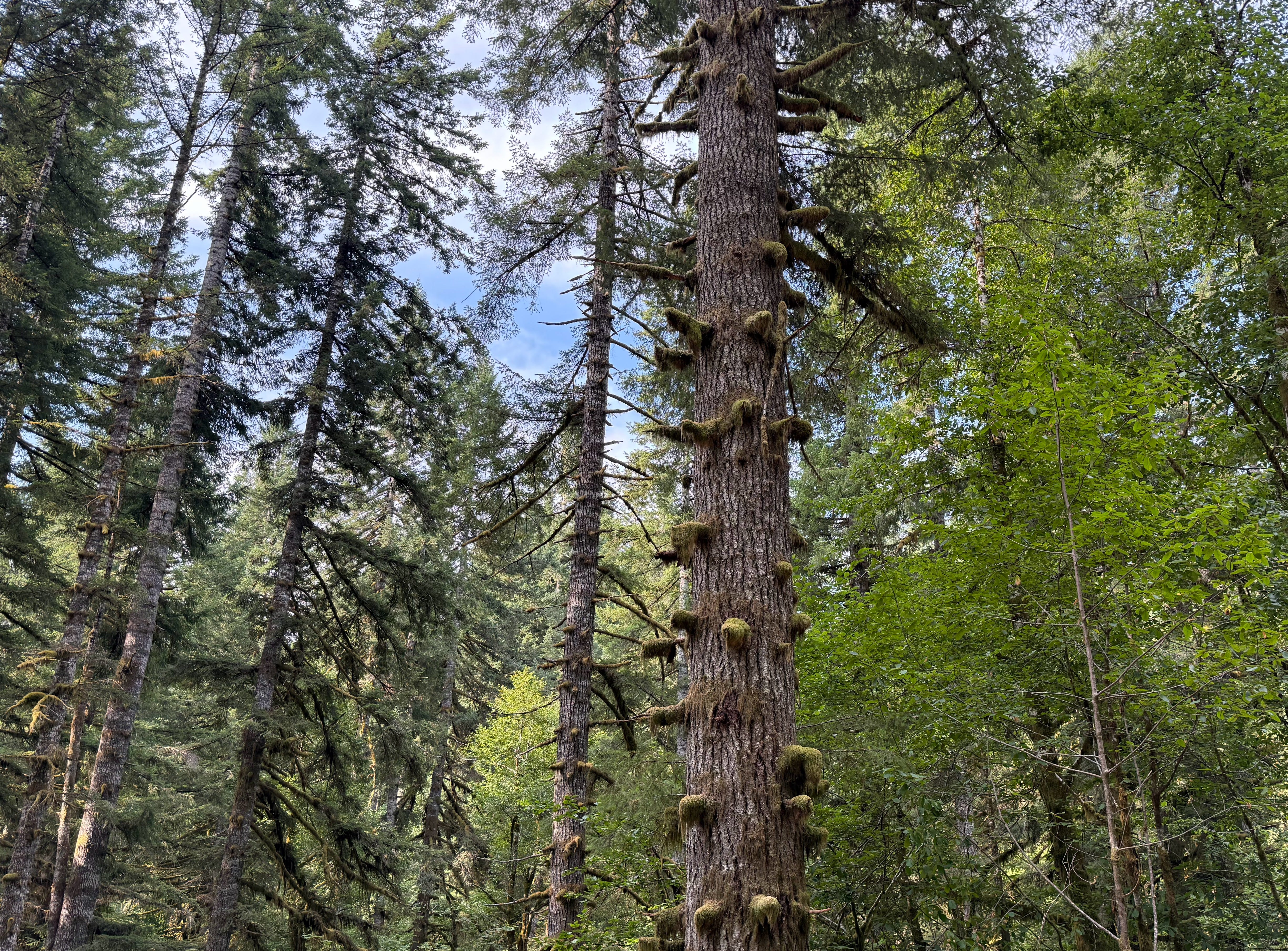 But often, it results from the need to remove less vigorous or compromised foliage. That’s what we see frequently here in the temperate rainforests of the Pacific Northwest. In a dense or mature forest, branches may become too shaded to contribute enough resources. So the tree releases the attachments that are no longer enabling optimal growth.
